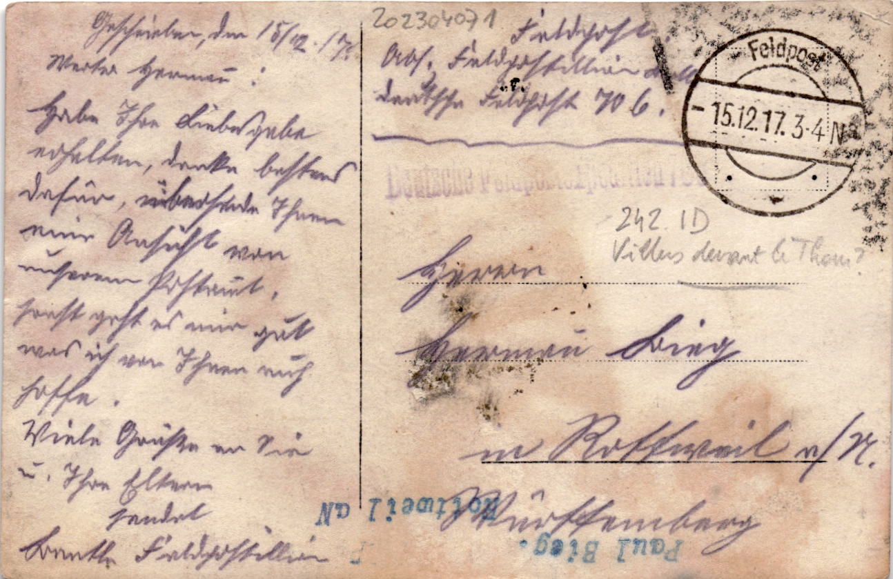 end of 1917. Feldpostexpedition 706 was with the 242 Infantry-Division