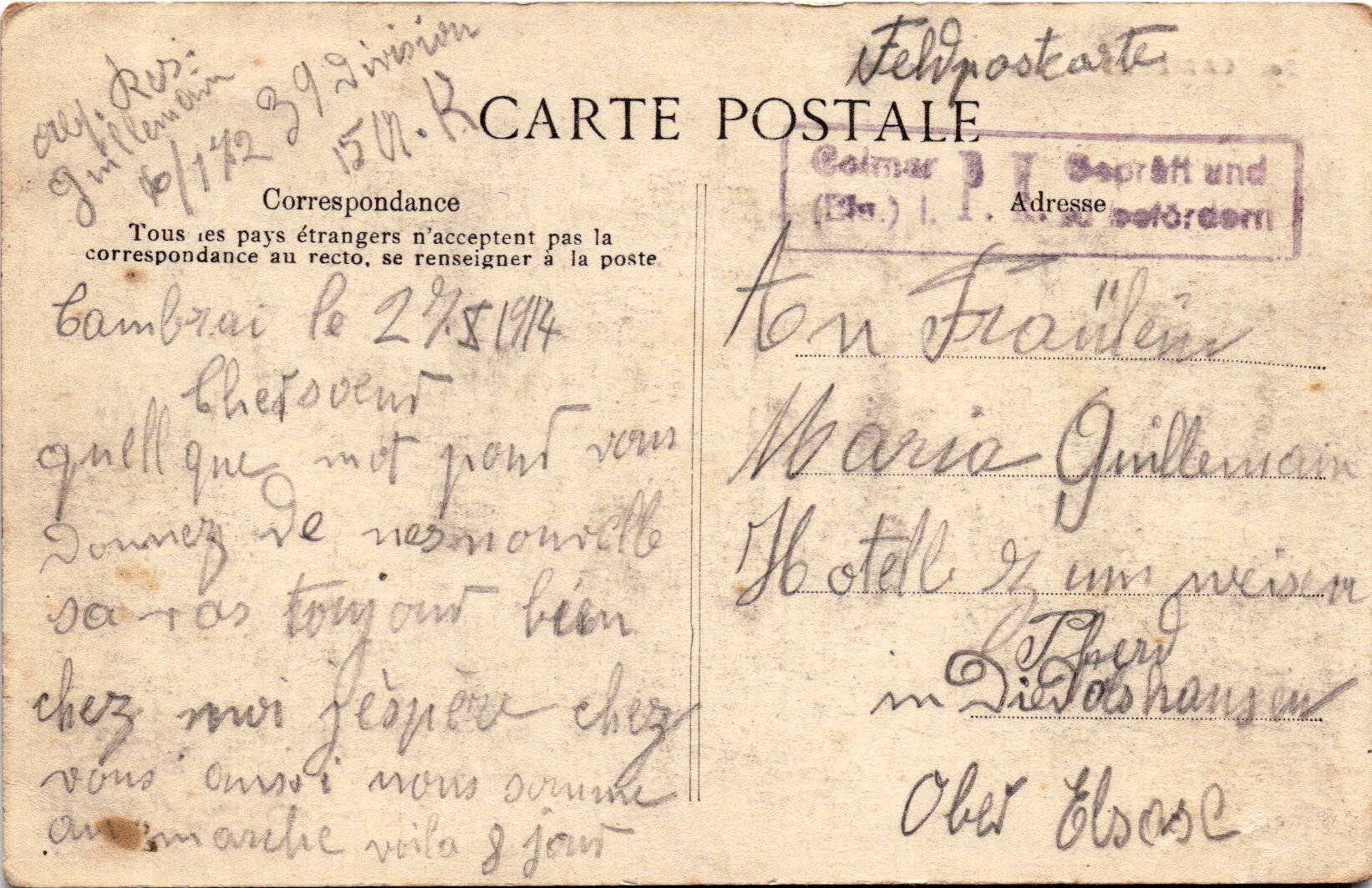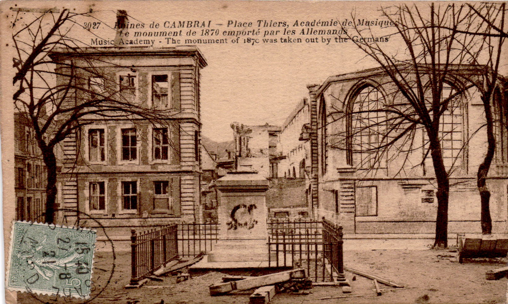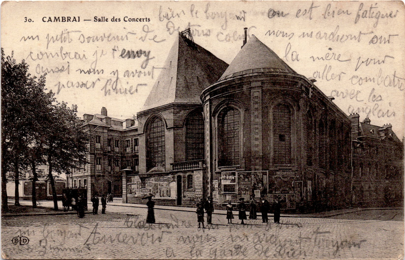 Since 1916, the Germans have regularly organized concerts on Sundays from 11:00 to 12:00 in front of the town hall, and if many soldiers arrive, the Cambrians avoid crossing the square at this time. Plays and film meetings entertain them. On June 29, 1917, at midnight, the concert hall caught fire, it was a fire caused by a movie that the Germans used this room as a cinema. The fire spread and set fire to the entire neighborhood. The patients were transferred to the Church of Saint-Gerri and the municipal school on Rue du Temple. On August 30, 1917 the Germans installed the chapel of the Great Seminary for this purpose and pierced a door in the thick wall so that there would be another exit. On 23 May 1918, the cinema was moved to the “Enfants de Martins” theater on rue Bertrand Milcent.