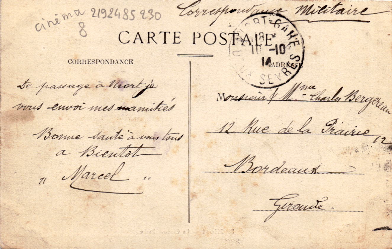 10-10-1914 FRANCE – NIORT – LE CINEMA PATHE – CAFE MODERNE