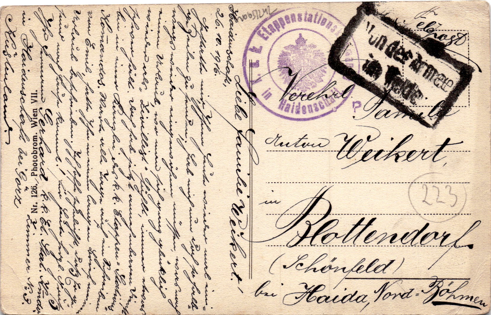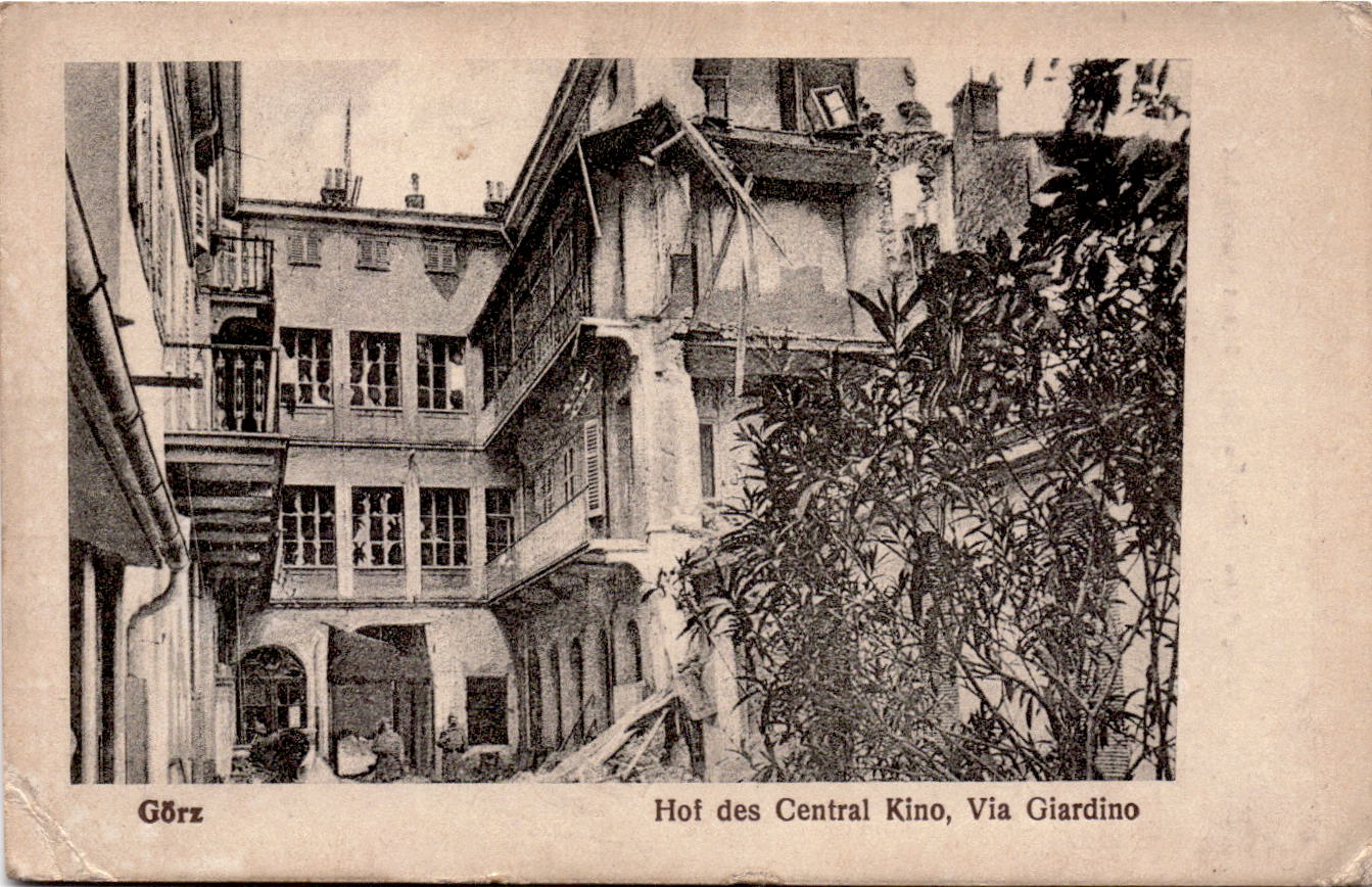 At the outbreak of the First World War, one of the cinemas in Gorizia was the “Central Bio, corso G. Verdi 32, p. Ginnastica, propr. I. Medved” (Paternolli Administrative and Commercial Guide for the Princely County of Gorizia and Gradisca, 1913-1914). In the image the rear front of the building with the passage through the courtyard that led from Corso Verdi to Piazza della Ginnastica.