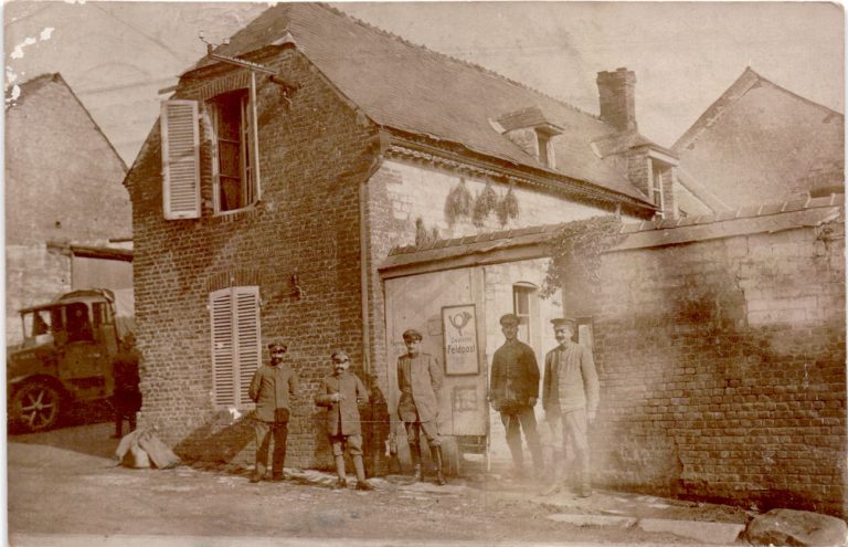 German soldiers (of the Feldpost) in front of Feldpost station 706 at the end of...